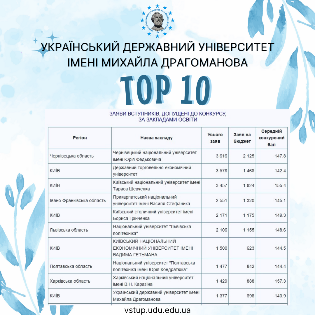 Вступники, які не отримали рекомендації за заявою з пріоритетністю в першу хвилю і виявили бажання навчатись в УДУ імені Михайла Драгоманова, рекомендації до зарахування на місця за кошти фізичних та/або юридичних осіб надійдуть після 11 серпня 2025 року у відповідну хвилю рекомендацій.