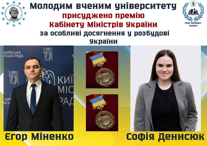 Вітаємо молодих науковців університетут зі здобуттям премії КМУ за особливі досягнення молоді у розбудові України за 2024 рік!