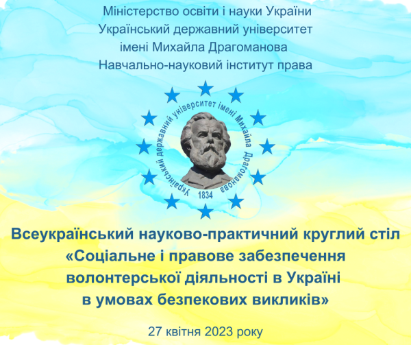 Запрошуємо взяти участь у Всеукраїнському науково-практичному круглому столі «Соціальне і правове забезпечення волонтерської діяльності в Україні в умовах безпекових викликів»