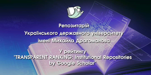Вітаємо колектив Наукової бібліотеки університету! Інституційний репозитарій Українського державного університету імені Михайла Драгоманова потрапив у рейтинг кращих репозитаріїв українських ЗВО "TRANSPARENT RANKING: Institutional Repositories by Google Scholar" (лютий 2023 р.).