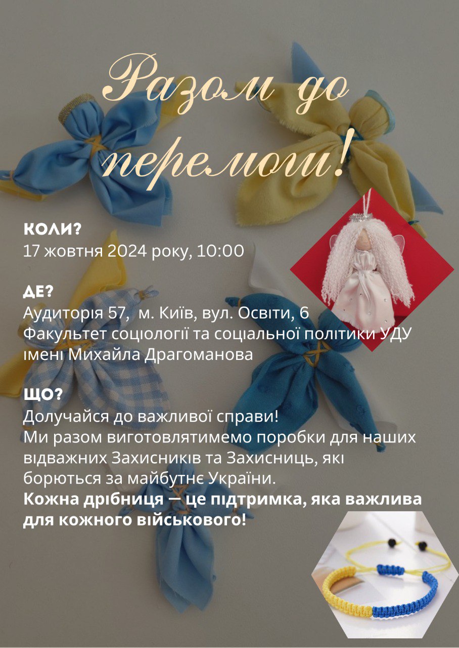 Факультет соціології та соціальної політики УДУ імені Михайла Драгоманова запрошує долучитися до виготовлення поробок для захисників та захисниць.