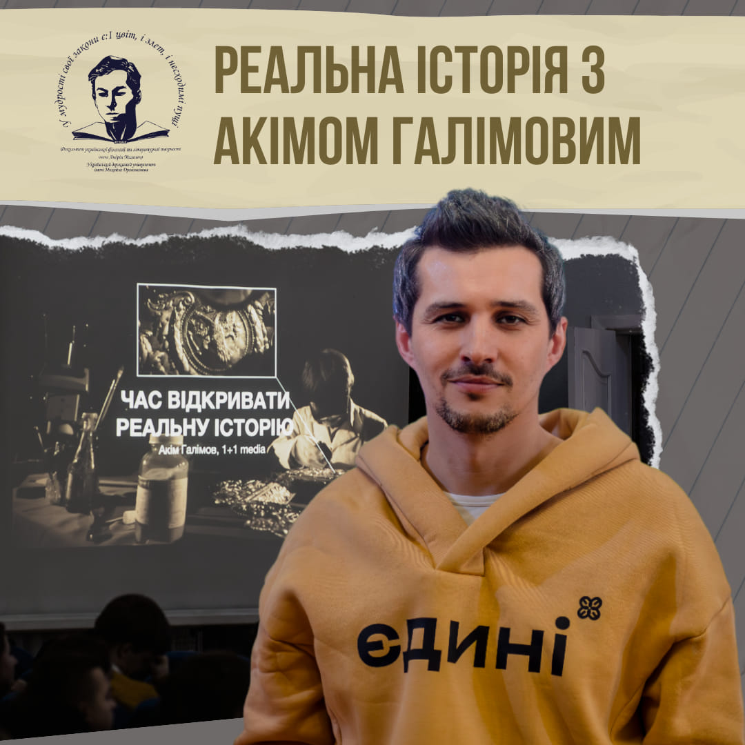 Нещодавно до УДУ імені Михайла Драгоманова в межах співпраці Руху Єдині завітав продюсер 1+1 media, засновник і ведучий проєкту «Реальна історія», амбасадор проєкту «Єдині» Акім Галімов.