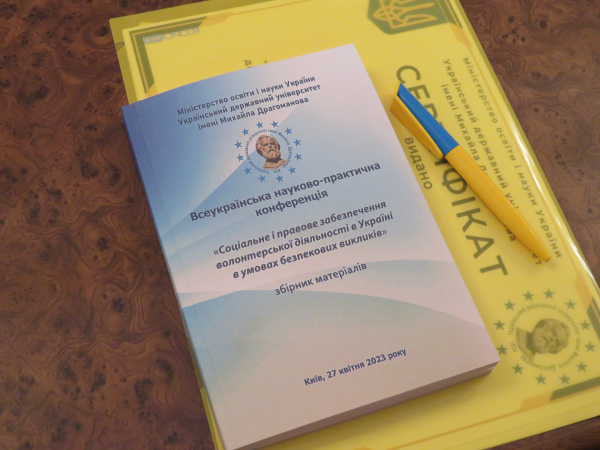 27 квітня 2023 року в Українському державному університеті імені Михайла Драгоманова відбулася Всеукраїнська науково-практична конференція «Соціальне і правове забезпечення волонтерської діяльності в Україні в умовах безпекових викликів».