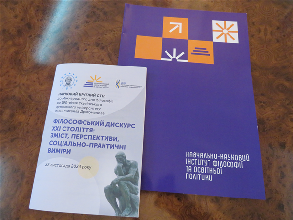 22 листопада 2024 року Навчально-науковий інститут філософії та освітньої політики зібрав на одному майданчику представників трьох провідних установ, які невтомно працюють над популяризацією філософської освіти та науки. Український державний університет імені Михайла Драгоманова, Інститут філософії імені Г.С. Сковороди НАН України та Київська Мала академія наук учнівської молоді об'єднали свої зусилля для обговорення теми «Філософський дискурс ХХІ століття: зміст, перспективи, соціально-практичні виміри». Подія, присвячена Міжнародному дню філософії, стала простором наукового діалогу про виклики сучасності, нові горизонти філософської думки та її вплив на суспільні процеси.